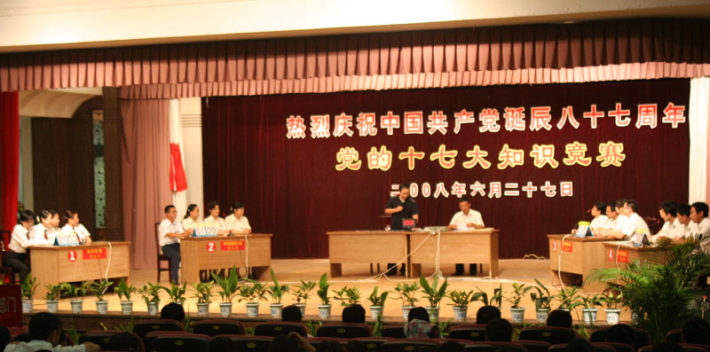 | 安徽皖源旅业集团党委于2008年6月27日下午在皖源国际大酒店会议中心举办"热烈庆祝中国共产党诞辰八十七周年暨党的十七大知识竞赛”活动。