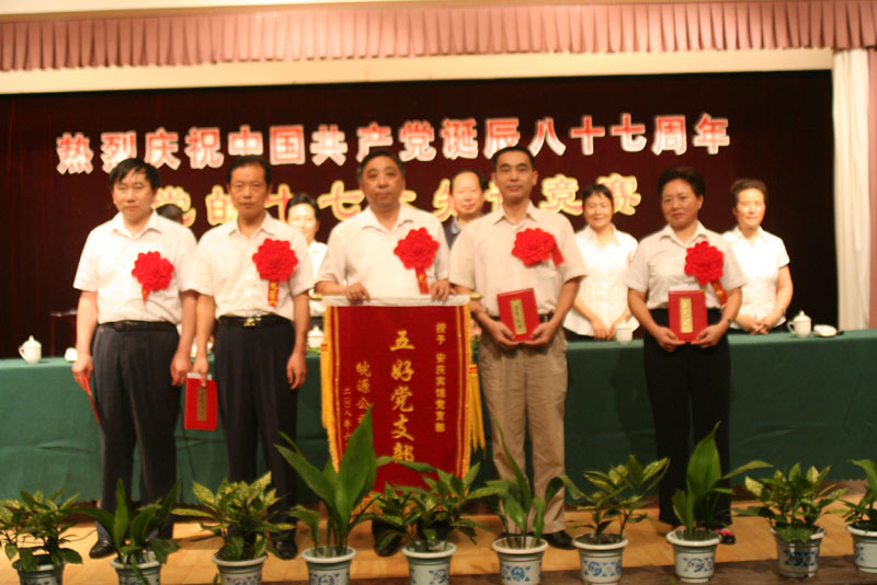 会上,集团党委还表彰了蒋立军、江守贵、何立新、韩丽萍四名“优秀共产党员”和安庆宾馆党支部一个“五好党支部”。