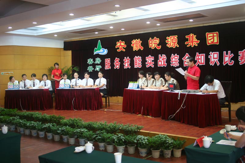 2008年7月25日,皖源集团客房餐厅员工开展了服务技能实战综合知识比赛,安庆宾馆代表队在上午举行的比赛中获得餐厅组第一名,安庆迎宾馆代表队在下午的比赛中获得客房组第一名。图为比赛现场